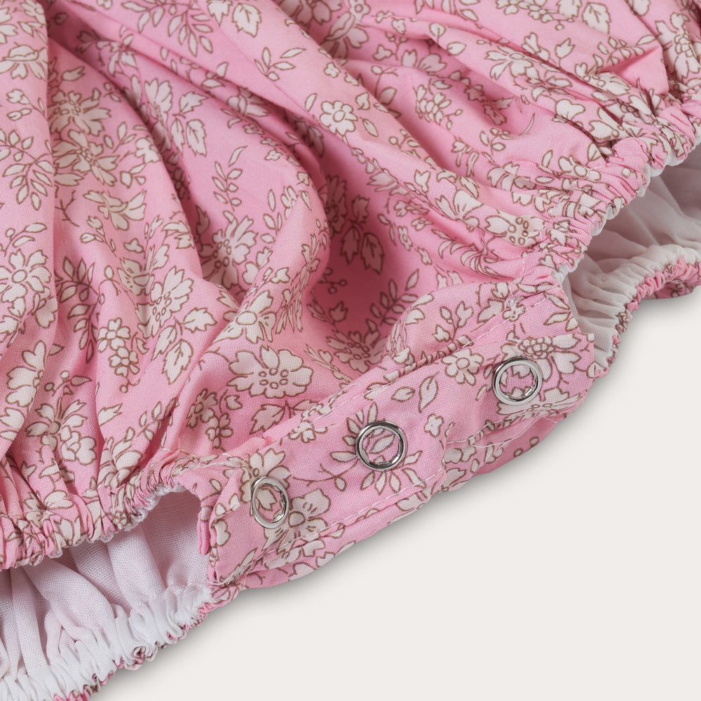 The Avril Romper is a timeless piece, beautifully crafted in a soft pink floral cotton and finished with exquisite hand smocking across the bodice. Designed in a traditional silhouette, it features gently puffed sleeves, delicate lace trim, and a classic Peter Pan–style collar for an heirloom look.
