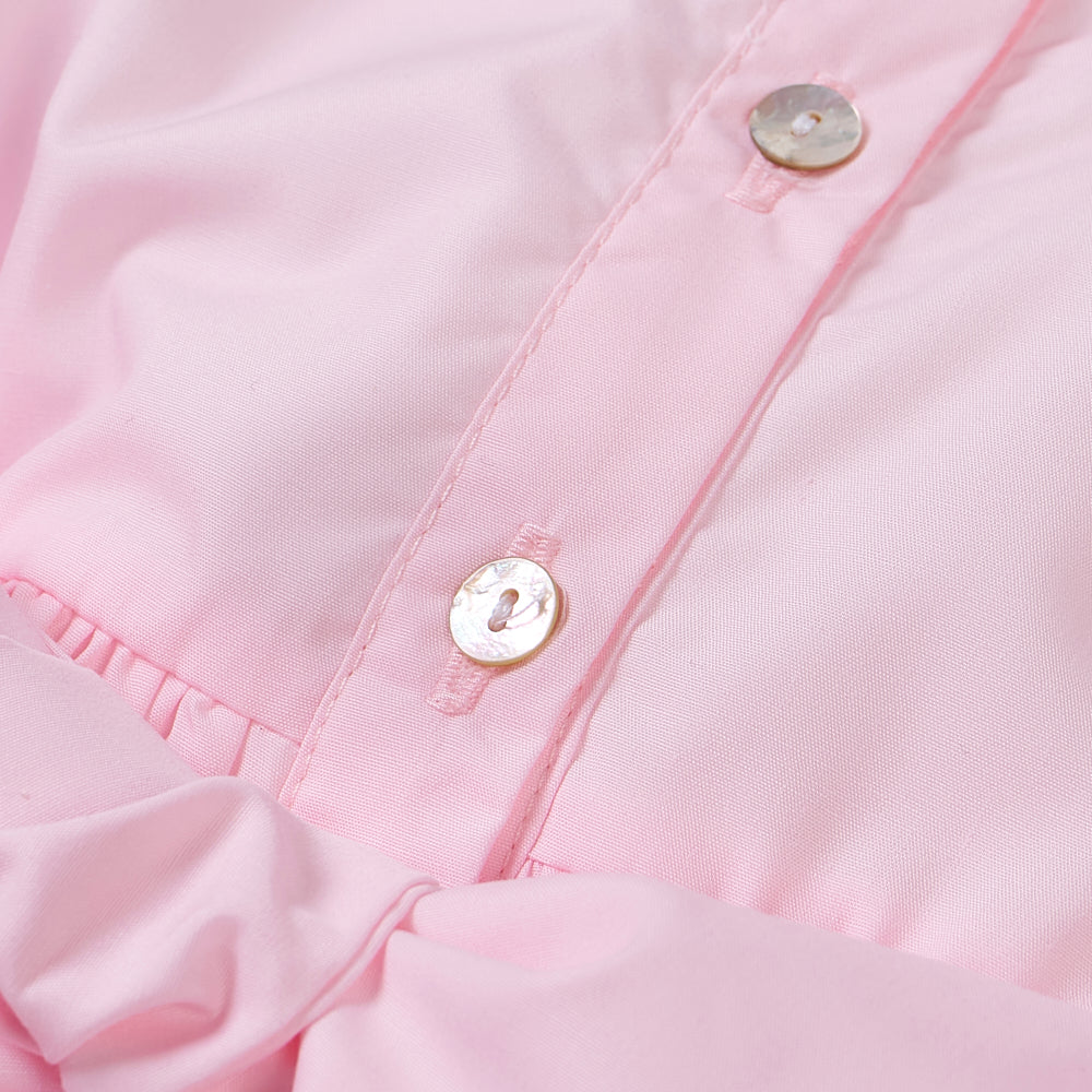 Delicate and timeless, this heirloom-style dress features intricate hand smocking across the chest and soft ruffle detailing for a classic finish. Crafted in a gentle pastel pink with a crisp white collar and sleeve cuffs, it’s designed for special occasions or elevated everyday charm. Lightweight, breathable, and lined for comfort — this dress is a beautiful blend of tradition and elegance.