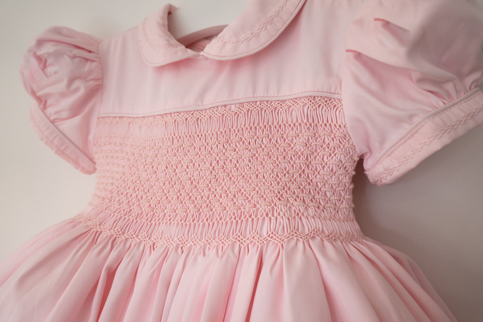 Presenting our beautiful hand smocked Millie dress in soft pink.