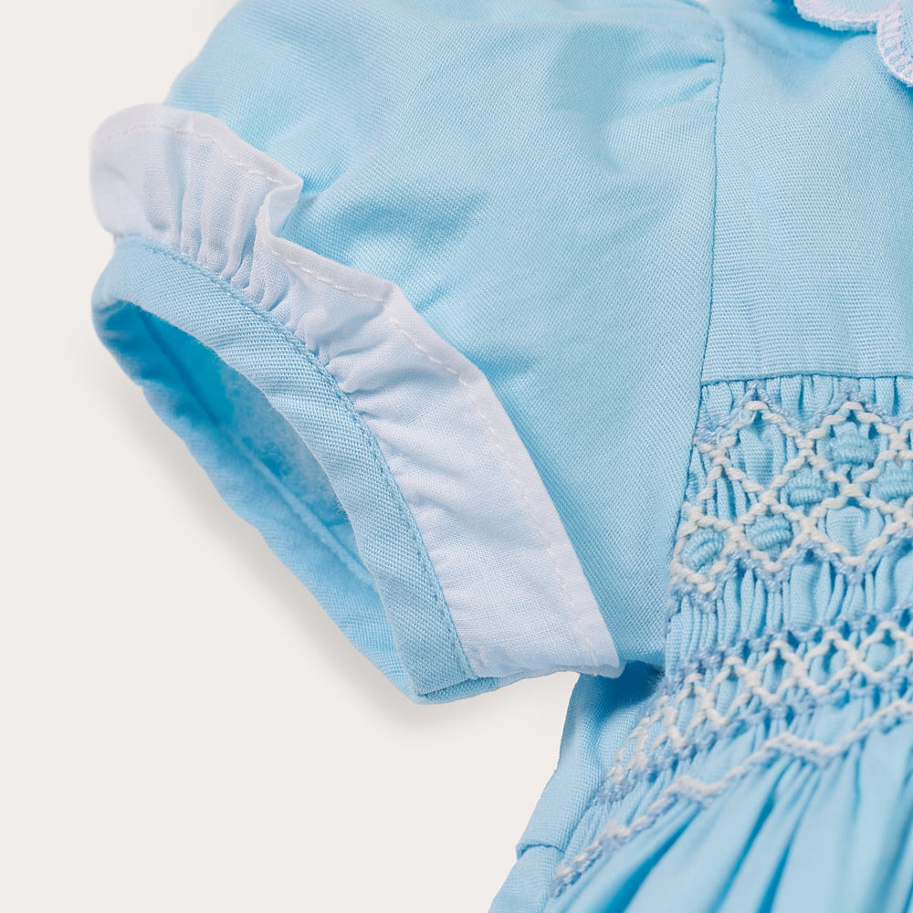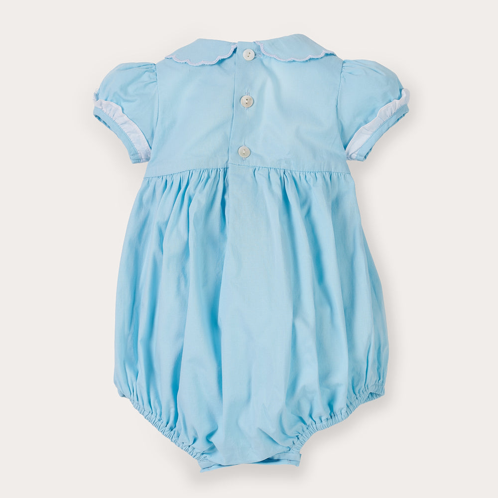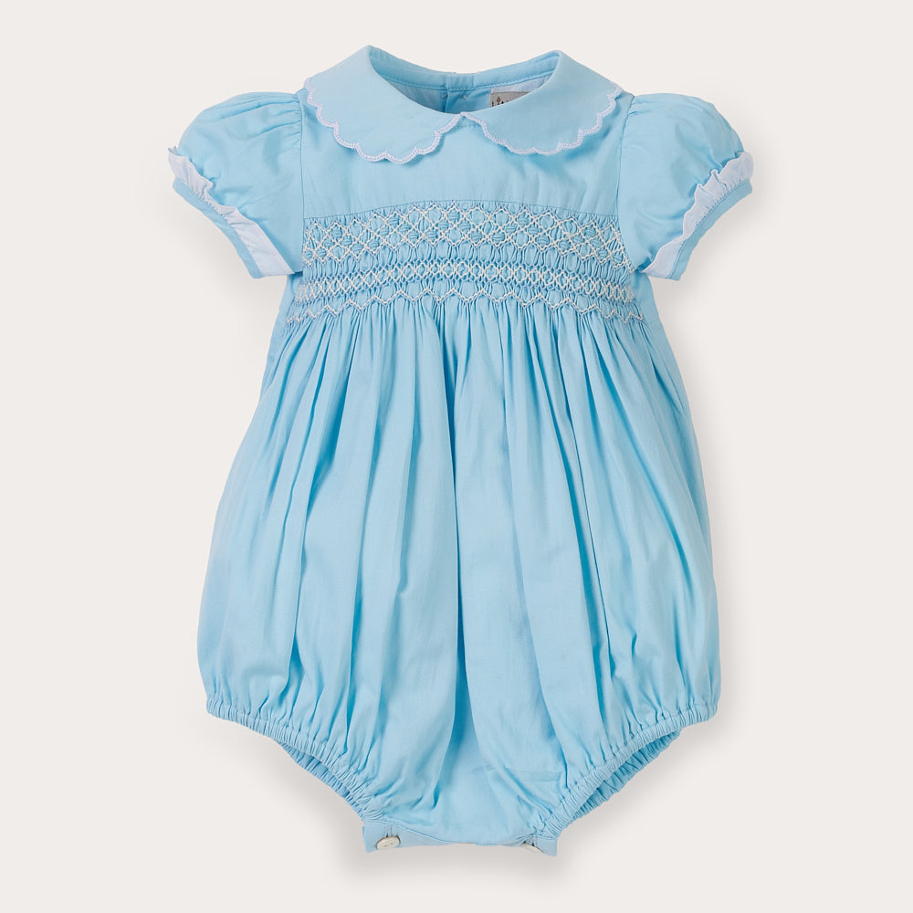 Hand Smocked Talia romper soft blue