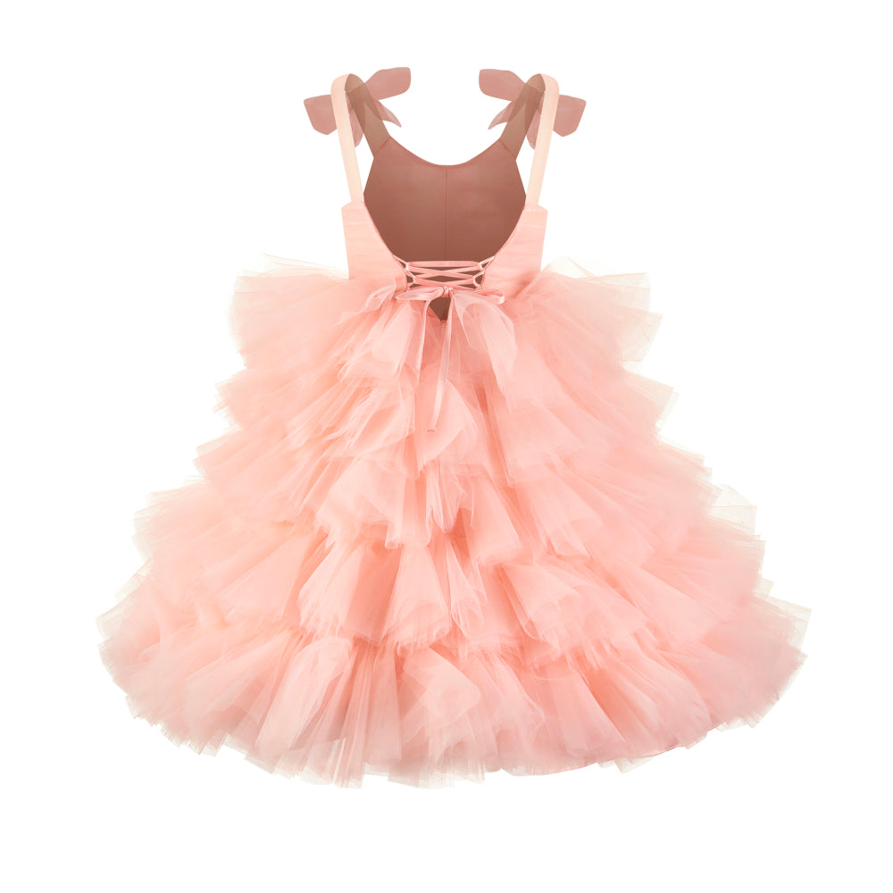 please note. As with all our occasion tulle dresses they need to be steamed upon arrival. This dress due to the many layers the tulle will have creases in  that needs to be steamed (or low heat iron with a towel over if you don’t have a steamer) to remove the creases for the maximum fullness.