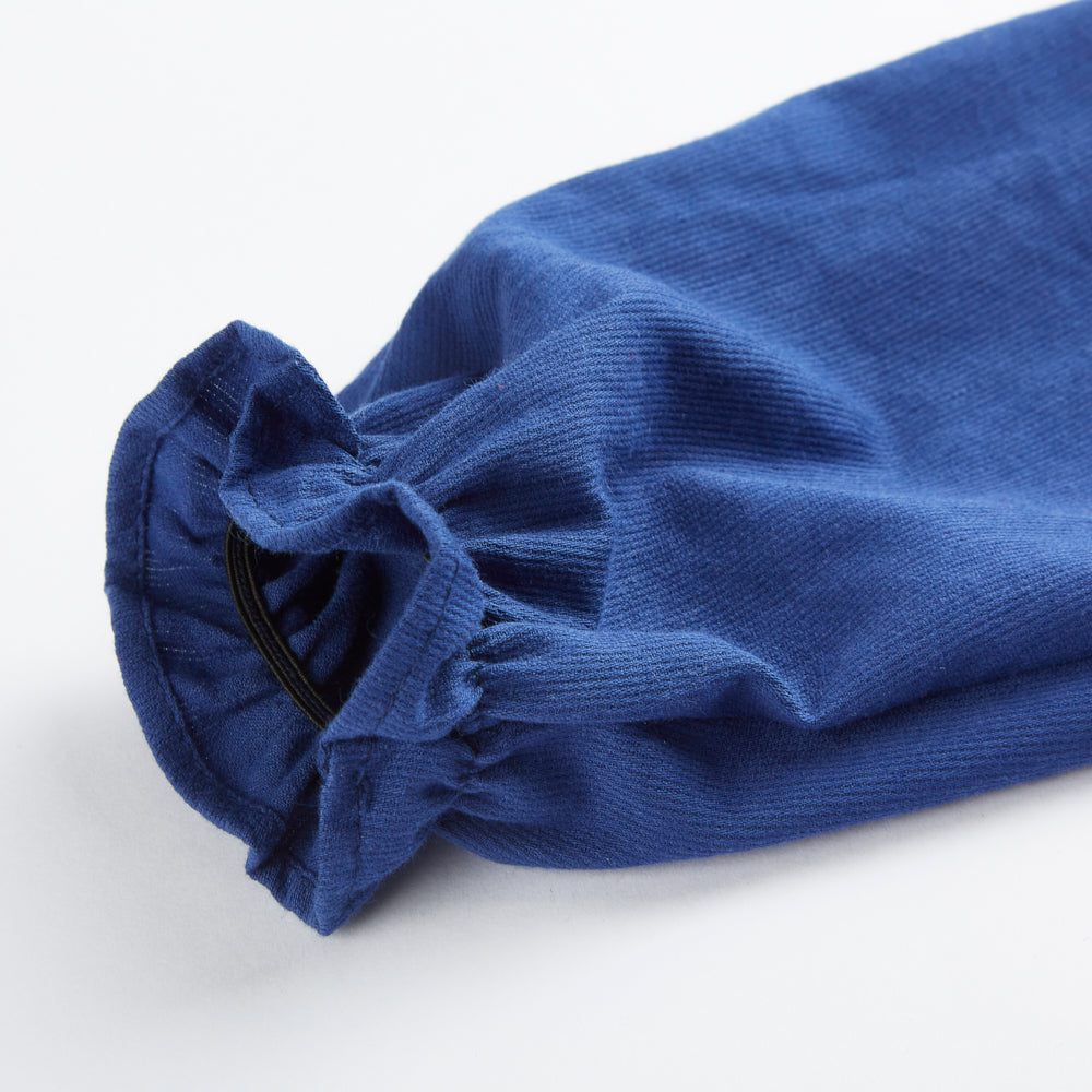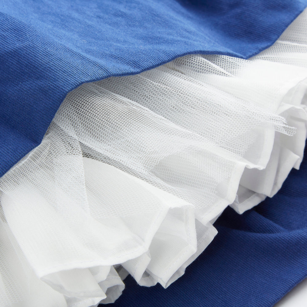In a Full circle skirt with under skirt. Crisp collar with piping edge. Full sleeves gathered at the cuff. Lined with tutu for maximum volume.
