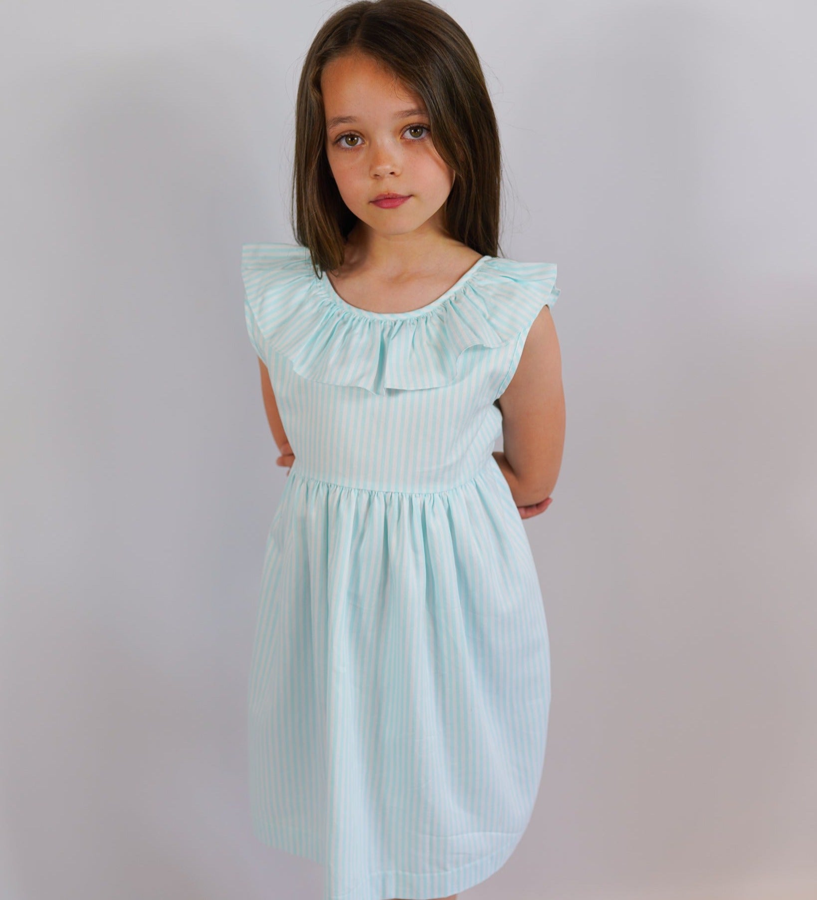 Mint and white striped linen dress