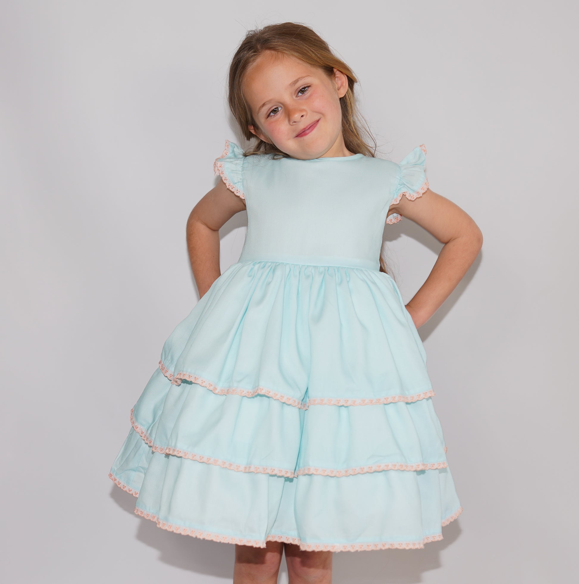Soft coral lace along the ruffle sleeves and 3 skirt layers